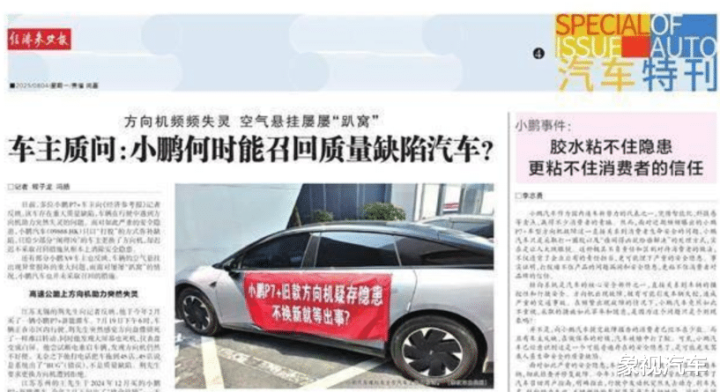 作为新华社主管主办的全国性经济类报纸,《经济参考报》拥有中央级媒体属性,具有国家级权威性。这样三位一份报纸,其报道内容自然不会无的放矢,而且影响力也极大。今年8月初和中旬,《经济参考报》先后两次发文,报道小鹏P7+转向机事件。其用极其犀利的文字指出小鹏“一边隐瞒缺陷,一边更换部件”,还认为小鹏疑似“瞒天过海”消解汽车召回政策。